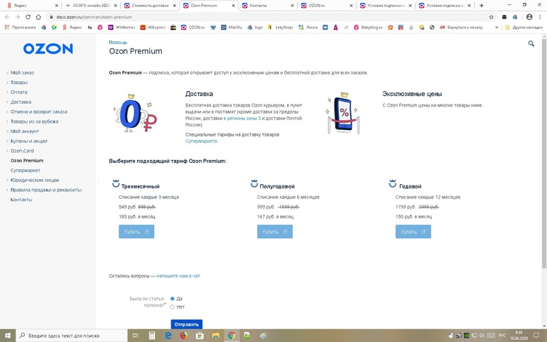 Интернет-магазиныХотела сделать заказ на озоне сейчас. А он пишет платную доставку, при том что у меня премиум подписка... На главной странице в условиях подписки доставка все еще бесплатная