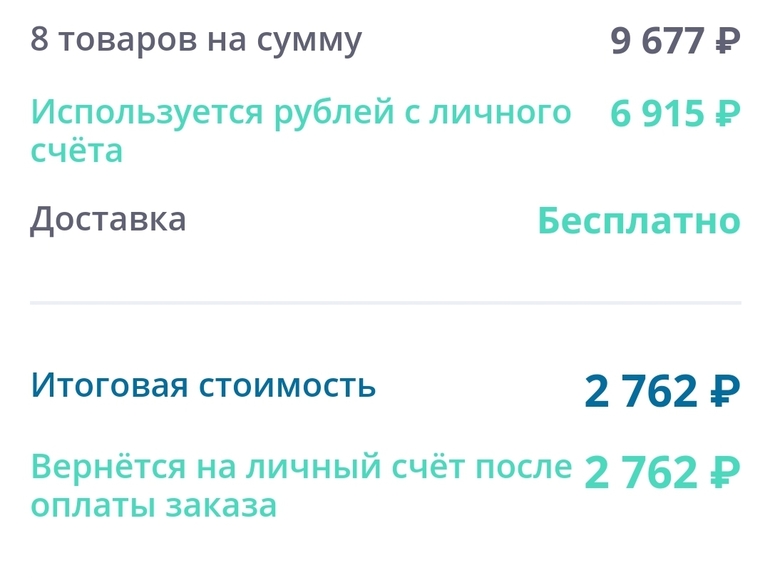 Итого заказ вышел на 2762р. Доставка бесплатная.