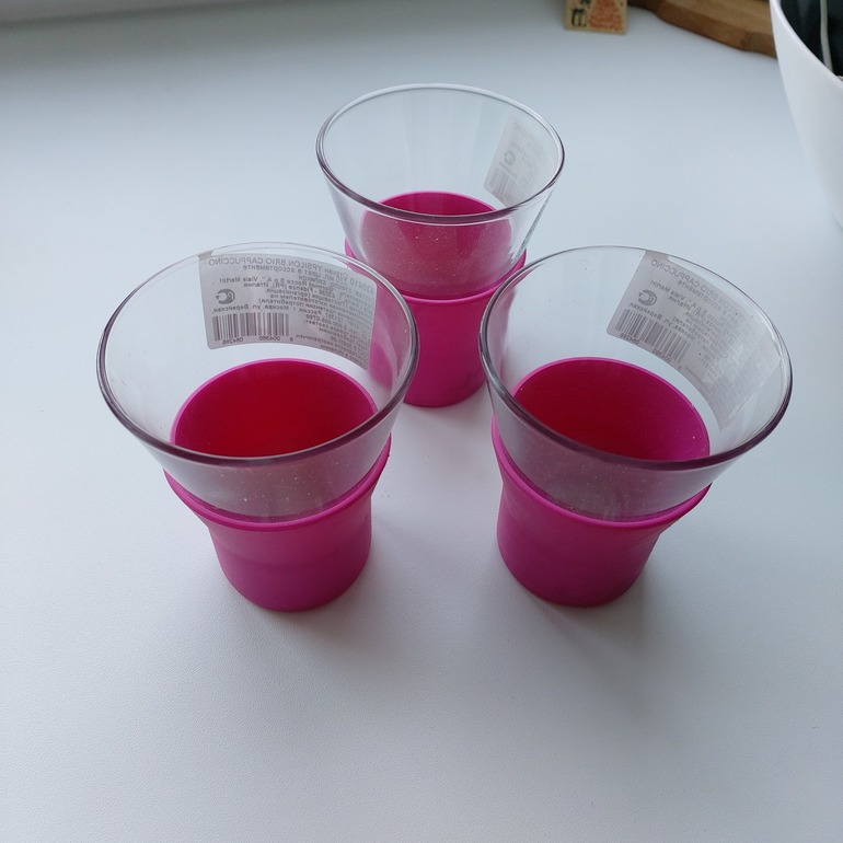 Я думала, что если "цвет в ассортименте", то придут разные. Но положили все розовые. Очень удобные. Стекло + силикон.
