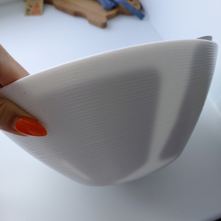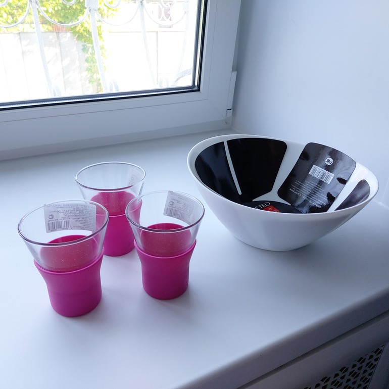 Салатник мне казался гладким, а на деле - ребристый). Салатников у меня много, оставлю на подарки. Большой. В сравнении со стаканами: