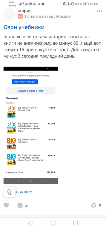 Скидки и акции (для всей семьи)Девочки, я ночью пост написала а сегодня днём: Книги стали ещё дешевле!! . Многие включили в акцию 2 равно 3 сегодня и ещё действует минус 15 при покупке от трех штук последний день! При этом многие цены не повысились (у меня много книжек в корзине лежит, видно что цены остались на месте или поднялись немного.