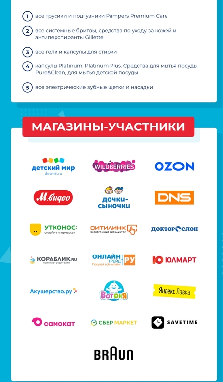 Сразу начисляют 15% кэшбека за покупку, далее эти вещи суммируются в прогресс покупок, где дают доп кэшбек (125р от 500, 225р от 1500, 400р от 2000, 1000р от 3000). И еще можно оставить отзыв на сайтах, приложить скриншот отзыва и получить 30-50р за отзыв. Таким образом, например за одну щетку Oral-b, купленную по самой дешевой акции (например, в Дет мире, Мвидео или Эльдо), можно вернуть около 300р кэшбека (!)