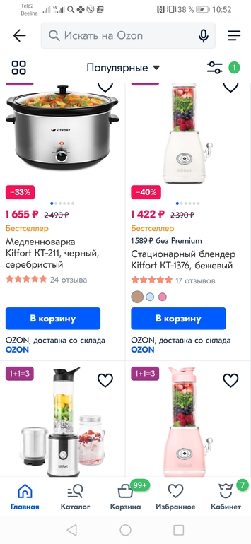 Скидки и акции (для всей семьи)1. Промокод Пятёрки скинул доп 30 с филипс. И китфорт.