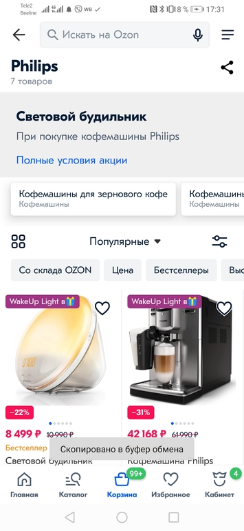 Вот по этой акции кофемашина в Озоне дешевле янлекс маркета