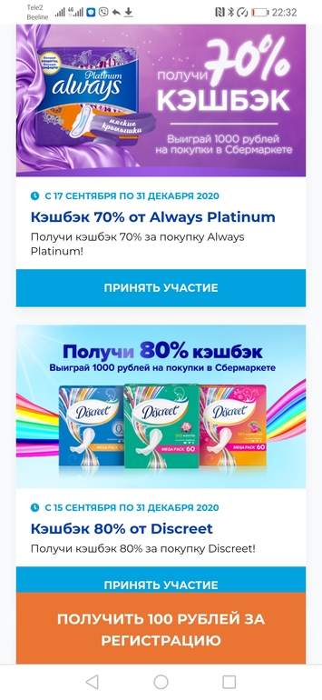 Обычно на каждую акцию с таким большим повышенным кэшбэком можно по 1товару. Но читайте внимательно условия каждой акции на сайте.