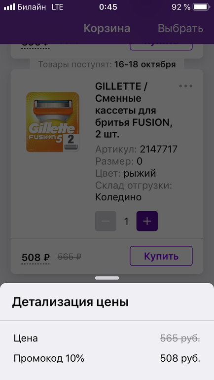 Глюк в корзине ВБ