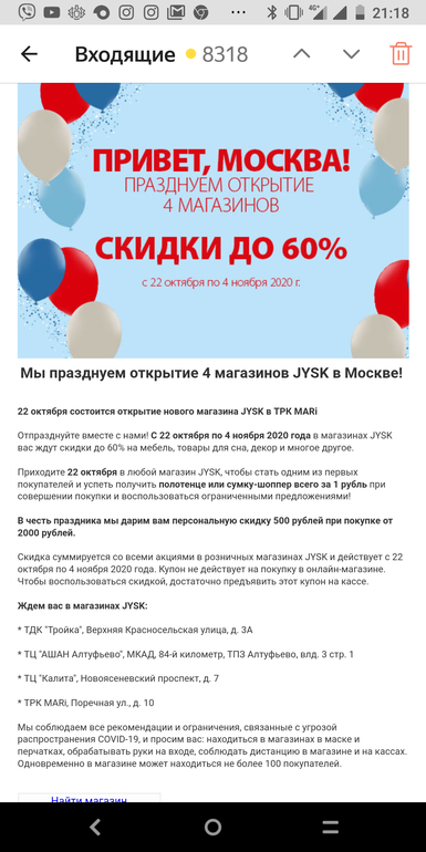 мария в Выбор товаров и услуг для дома и семьи 5 лет Jysk Скидки и акции (для всей семьи) Сегодня прислали рассылку. В письме купон на скидку 500 от2000 Посмотрите еще 20 записей на эту тему Отменить Ответить Магазин COS Асос Чаты Беременных Выберите чат: Январята-2026 Февралята-2026 Мартята-2026 Апрелята-2026 Майчата-2026 Июнята-2026 Июлята-2026 Августята-2026