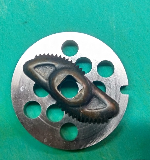 Я на рынке в частном магазине нашла,да они везде есть,где смесители/лампочки продают...Вот,разница сразу видна по ширине решетки..и такой нож-лепесток все рубит,даже хрящи и точить его не надо..
