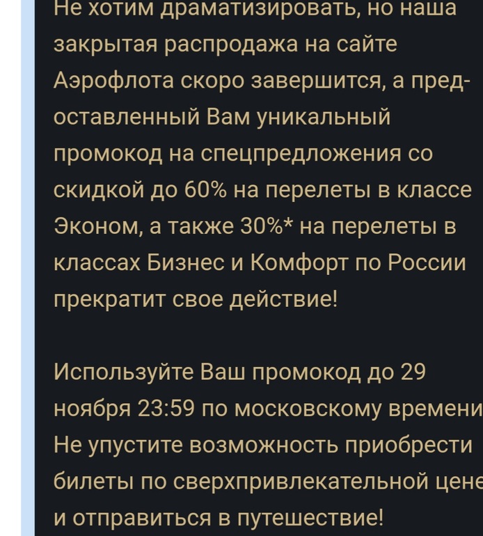 Что за промо на аэрофлот? Никогда не пользовалась. Какую скидку они дают? Только вчера оплатила билеты :-(
