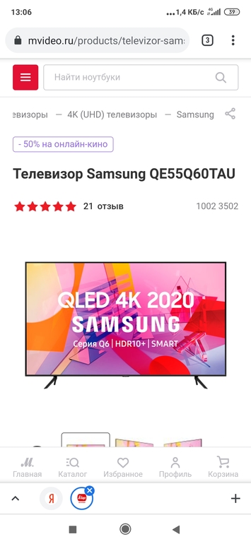 Я понимаю, что мвидео удобно в плане возврата..но для меня это не стало аргументом в их пользу. Если у них тв стоит 90, а в плеере, например, 65, то я куплю за 65 и сама как-нибудь, отвезу тв в Самсунг.
