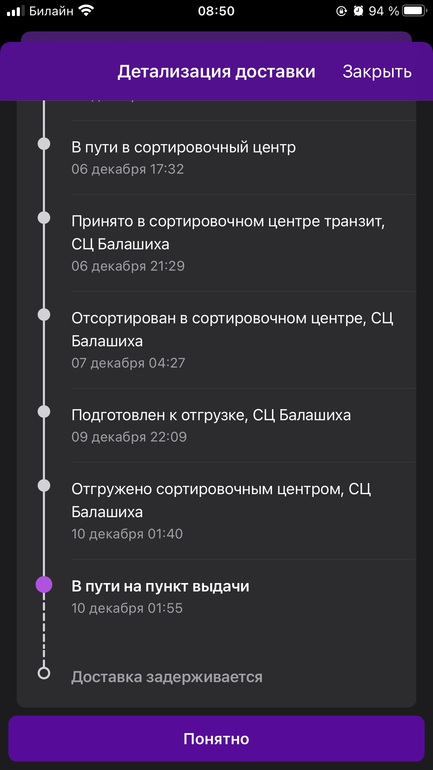 Заказана ёлка очень ждут дети и вот с 5 числа еле еле движется доставка. Сейчас вот так зависла и уже появилась кнопка отмена доставки . Но она нам очень нужна в наличии нет и не будет . Есть ли Надежда что доедет всё таки? У кого то так было. В одном отзыве нашла что тоже ехала 2 недели , но приехала . У меня такое впервые , однажды только заказ замер на стадии оформления , но тут понятно после появления кнопки отменила заказ. А сейчас может всё таки доедет🙏🏻