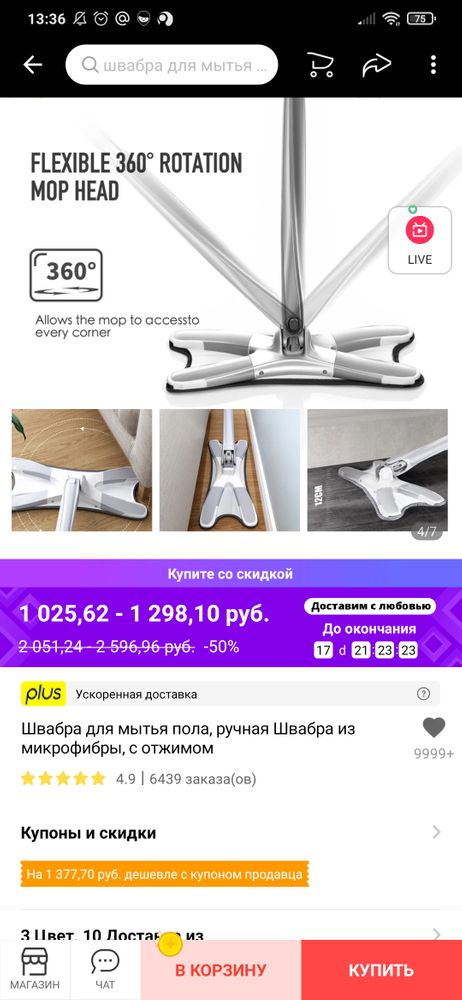 Швабра тоже отличная. Всеми хвалебная веледа у меня сломалась в первые 3 месяца использования, да и мыла, довольно посредственно. Эта и моет поприличней и отжимать удобнее
