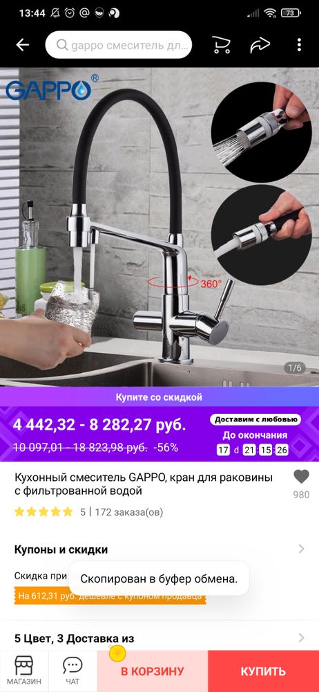 4 442,32 руб. 56%OFF | Кухонный смеситель GAPPO, кран для раковины с фильтрованной водой