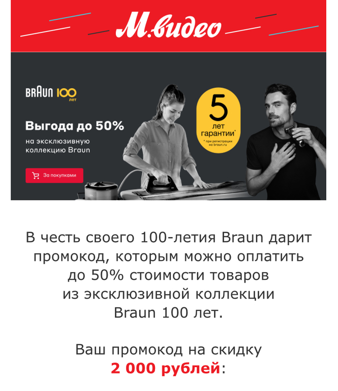 Мвидео: «Braun 100 лет. Скидки по промокоду до 50%»