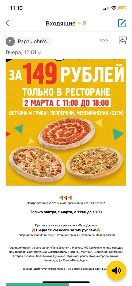 Скидки и акции (для всей семьи)«Щедрый вторник» в Папа Джонс, есть исключения действует не везде