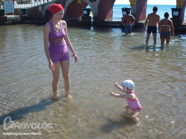 ЭЭто детский пляж и их же кусок моря. Арки на заднем плане-мол. Там где двое товарищей идут проход в открытое море через приту. Это к тому, что если ребенок там крутится надо самому там находиться, а так супер....