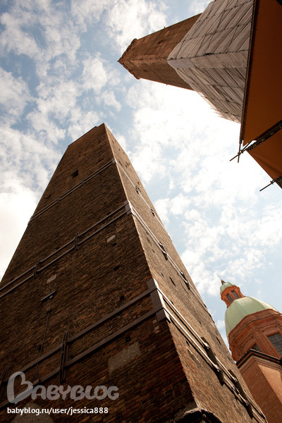 К счастью не все башни города были разрушены, и сегодня башни Болоньи являются одним из главных исторических памятников города. Самые знаменитые башни города – это Azzoguidi Tower, высота которой достигает 61 метра, Prendipate Tower, высотой в 60 метров, Scappi Tower, высотой в 39 метров, Uguzzoni Tower, высотой в 32 метра. И, несомненно, два символа Болоньи – Asinelli Tower (97 метров) и Garisenda Tower (48 метров). Последние две башни так и называют – “Две Башни”. Главные башни Болоньи – “Две башни” – примечательный еще и тем, что с самого начала они были построены под наклоном, поэтому их в народе называют еще и падающими башнями. Расположены башни были в самом центре средневековой Болоньи, в том месте, где пересекались все дороги от городских ворот.