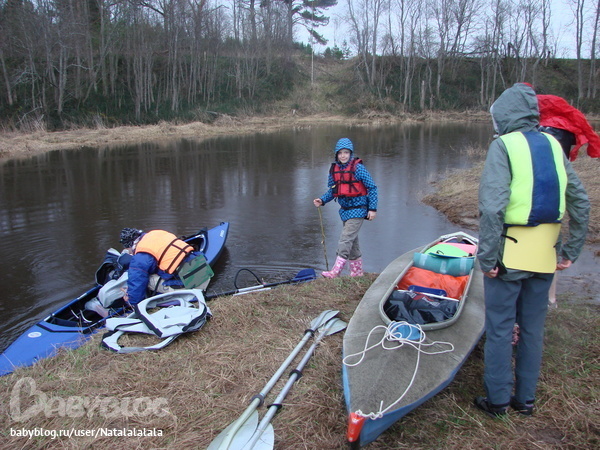 Собрались на берегу реки Большая Тигма в Выдропуржске. Под лёгким дождиком собрали байды и выдвинулись в сторону Тверцы. Шли мы тремя байдарками. На каждой по 2 взрослых и один ребёнок.