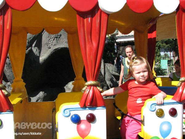 следующая станция "паравозики", с которых нас сняли, потому что Ксюша пыталась встать, а на замечание тети она разревелась