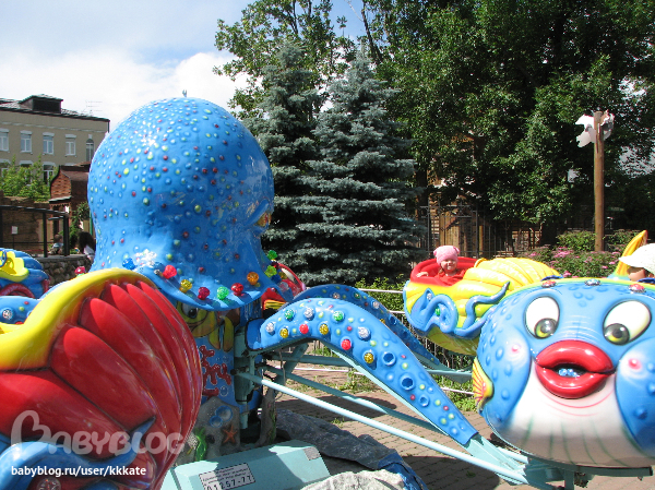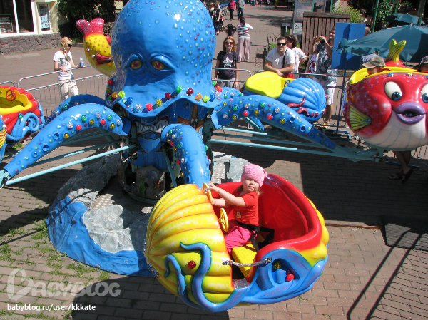Пустили нас на осминожка только со второго раза, так как после первого, Ксюшка пыталась пересесть на др. место, но после жалобного плача ребенка, оператор согласился ее прокатить...