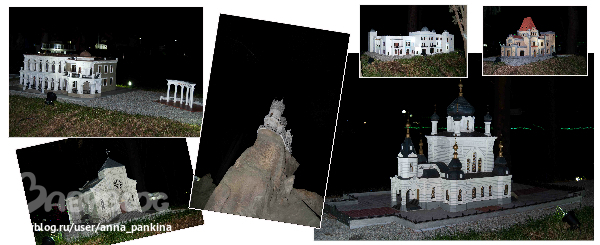 Пока в парке больше всего миниатюр объектов Большой Ялты. Их 11. Здесь и Ливадийский и Массандровский дворцы, Костел непорочного зачатия Девы Марии, Армянская церковь, замок Ясная Поляна, дворец Харакс, дворец Кичкине, дворец Дюльбер, домик Чехова, Церковь вознесения Христова и Ластачкино гнездо.