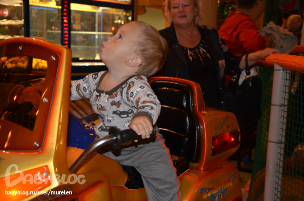 Итак, на 4 этаж, если что и заходишь во взрослый ад - визжат дети, шум, все носятся с ошалелыми глазами, мамы, коляски, папы, дети все возрастов. Но это прикольно всё!!!!! Как с американского лунопарка кадры... Купила карточку и положила туда 1500р, через 15 минут, на ней осталось 40 р, а были мы там часа 3 или 4. Папины опасения сбылись...Потом правда немного остановились. Американские горки это 40 секундный заезд, я только приготовилась испугаться, а всё... -выходим, Муж говорит-" Мы только что 500р за 40 сек потратили))" Артём очень любит "ясли", в любом месте, там тоже они были и там он конечно же завис. Артур катался на машинках и был и в восторге и в шоке. Потом пошли с Артуром по магазинам, а папа с Артёмом продолжили игры в автоматах. В конце, Артём сказал, что ему всё понравилось, но лучше в Динозаврию.... Фоты
