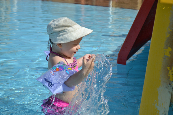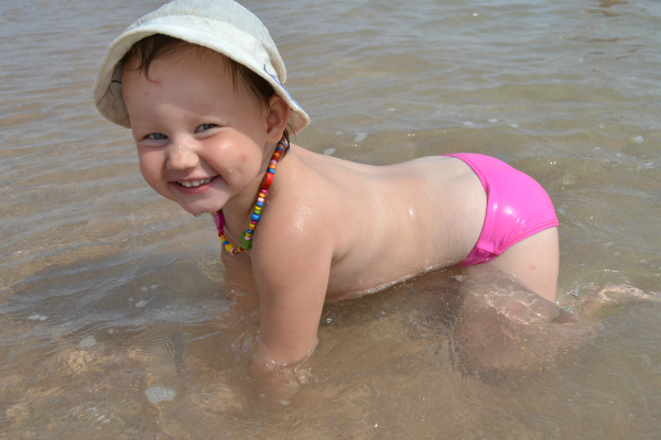 Вера совсем не боялась моря. Бесстрашно шла по шею около пирса долго долго. Поднимала попу и била ногами. На ней были надувные нарукавники. Брызгалась, пила воду морскую и кричала "Солёна". Копалась в песке и просила строить замок. Кормила рыб и боялась их немного.