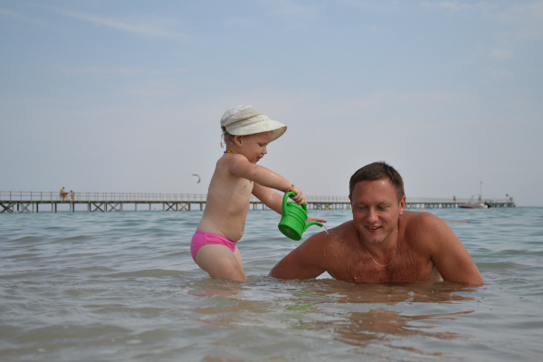 Отдых прошел замечательно. Я не воспользовалась огромной аптечкой, которую собирала на всякий случай для Веры. И это самое главное!!! Ну только Фенистил гелем и зеленкой укусы комариные мазала. Они умадрились Веру покусать в первый день на море. Больше мы так долго на пляже не засиживались. Уходили с пляжа до захода солнца.