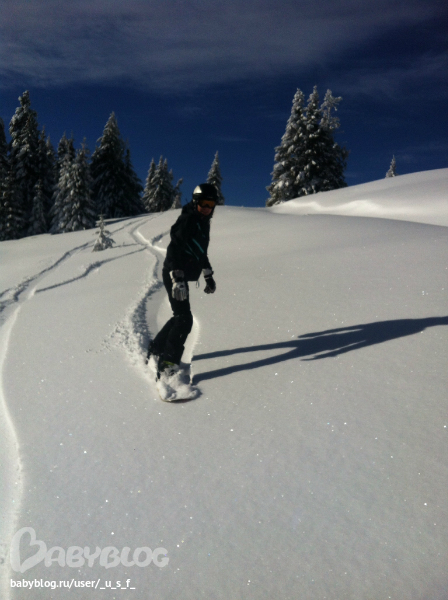 Второй вариант очень достойный для более продвинутых гонщиков - склон горы Gobelja. Добираться туда примерно полчаса, сначала на 7м подъемнике Karaman Greben, затем по 14й довольно пологой трассе, далее низкий бугель, для лыжников не проблема, для сноубордистов to whom how - мы с мужем открыли для себя, что проще держаться задней рукой за трос, так больше шансов удержаться на ногах, а передней ведущей за сам бугель. Далее вниз по 10й трассе, перейти через дорогу, еще один 11 Jaram бугель и.. Тадам вы в красно-черном-фрирайд раю)))