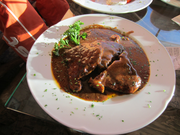 Ресторан находится в подвале отеля, довольно большой и светлый, оформлен в деревенском стиле, старинные вещи и приборы из меди. Еда вкусная, но тоже какая-то деревенская. Все очень мило. Имеется лоби бар с огромными диванами