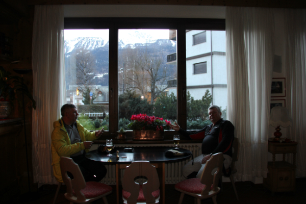 В Бормио приехали часиков в 5 (17-00) или раньше. Довольно быстро нашли свой отель, администратор которого заявила, что на наши имена (и всей нашей компании в 25 человек) мест не зарезервировано и не оплачено. После нескольких минут убеждения нас все-таки поселили. Нам с Андреем дали номер… нет, не номер, наверное, это комната уборщицы… все стены отделаны деревянными панелями, на полу кафель, более того, - это ЧЕРДАК! Такая атмосферка вызвала во мне бурю негодований и жуткую тоску. Однако нас заверили, что утром комнату нам поменяют.
