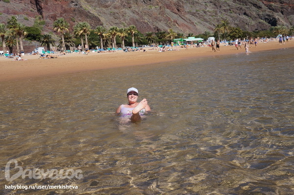 Купаться сначало заходишь холодновато, градусов 20-21 наверное, а потом еле выходишь. Пляж у них так и называетс типа " золотой". Находиться между городком Канделярия и Санта Крузом.