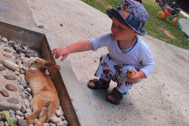 единственное кого он решился потрогать был кролик,поедающий БАНАН...