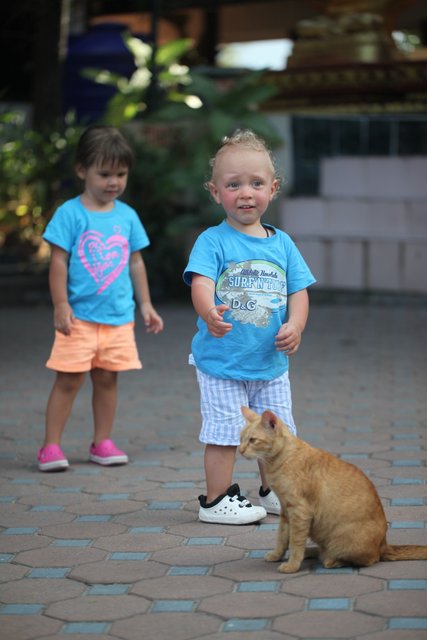 Деткам большой Будда,конечно был не очень важен,они заинтересовались местным котом...
