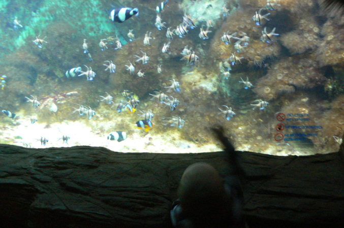 До половины пути он бегал от одного оквариума к другому, тыкал пальцем в стекло и пытался пересчитать рыбу ))