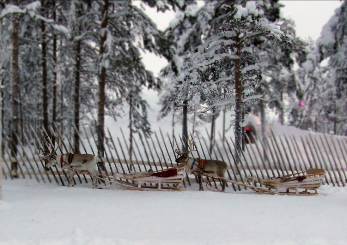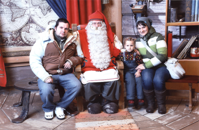 На следующий день активно кататься не хотелось вообще, и мы поехали к Санта Клаусу. На машине 2,5 часа, город , и вот заветный поворот на Santa Claus village Погуляли по парку, Дарья накаталась с горок, уводили с трудом. Конечно зашли в главную резиденцию и сфотографировались с самим Сантой ))) Куча маленьких магазинов с сувенирами и Дашеньке подарок – щенок хаски. Кстати, недалеко от деревни есть парк хаски, но в момент нашего приезда он был закрыт. Но зато мы увидели настоящих северных оленей. Не прокатились правда, потому что поездка была без единого наличного евро. За всю поездку только один раз воспользовались наличными – на заправке колонка не принимала карт. Один раз на страну! В период зимних каникул рядом открывается Санта Клаус парк со множеством зимних развлечений, но он работает с декабря по 15 января и мы его не увидели (