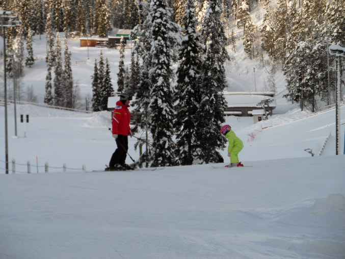За 7 дней пребывания, Даша два раза каталась с инструктором. С детского склона они прокатились пару раз и поехали на большие горки. Кресельный подъемник ей не понравился – испугалась высоты, а вот с бугелем подружилась. Мнение инструктора, что Дарья может прекрасно сама кататься с горок, но если бы она еще слушалась, когда надо притормозить или повернуть, то можно было бы кататься все вместе, а пока только с жестким контролем. Задумываюсь о покупке шлейки…