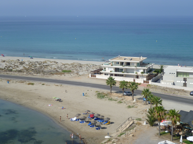 Дом находится на берегу двух морей, до Средиземного 80 м и 30 м до Мар Менор. Пологий заход в воду.