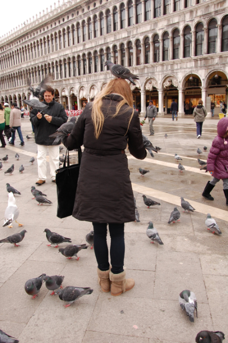 Но знаменитые голуби таки посидели на мне:) А одну девушку обкакали:)