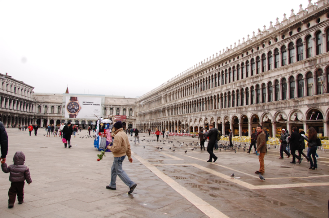 Как мы отдохнули!(рассказы и фото)В Венеции мы были всего несколько часов, было очень холодно, дождь то начинался, то заканчивался, нам еще предстоял 5-ти часовой переезд в Рим, и поэтому посмотрели мы только Площадь Сан-Марко. Хотели проплыть по Большому каналу на корабле, но не разобравшись в расписании и маршрутах следования этих корабликов, и на площадь и с площади плыли окружными путями:( Поэтому решили обязательно вернуться туда еще раз, кгда будет более подходящая погода и не такой плотный график переездов:)