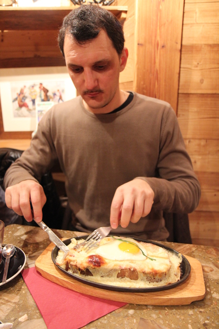 за исключением того, что где-то в его недрах прятался олимпиийский стадион. Но мы решили не углубляться в эту тему и предпочли пойти позавтракать в местном ресторанчике. Рона-Альпы - это, конечно же, обилие сыра, хлеба, картошки и мяса во всех блюдах. Смесь полезная, разве что, пастухам, замерзающим на заснеженных склонах, но не попробовать савойскую кухню, будучи в Савойе, это настоящее преступление. Так что, налегайте на фондю, раклет и прочие вкусности без зазрения совести! Всё это ОЧЕНЬ вкусно!!!
