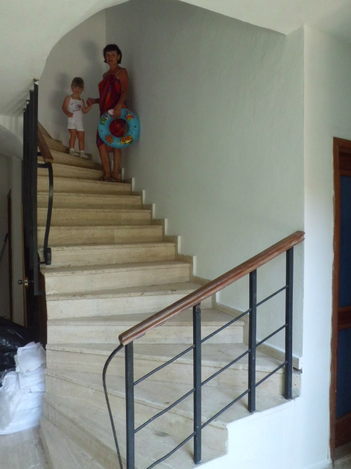 1. очень крутые лестницы- мы жили на третьем этаже и сама Ксю спуститься еще не могла