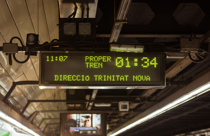 Табло на станциях показывает время до прибытия поезда. В Москве вроде наоборот, показывает когда поезд ушел.
