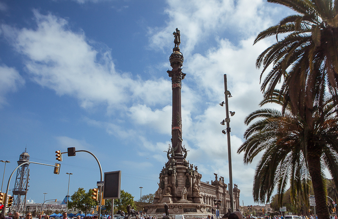 Впереди памятник Колумбу. Именно на этой площади он представил доклад королевской чете о путешествии в Америку.