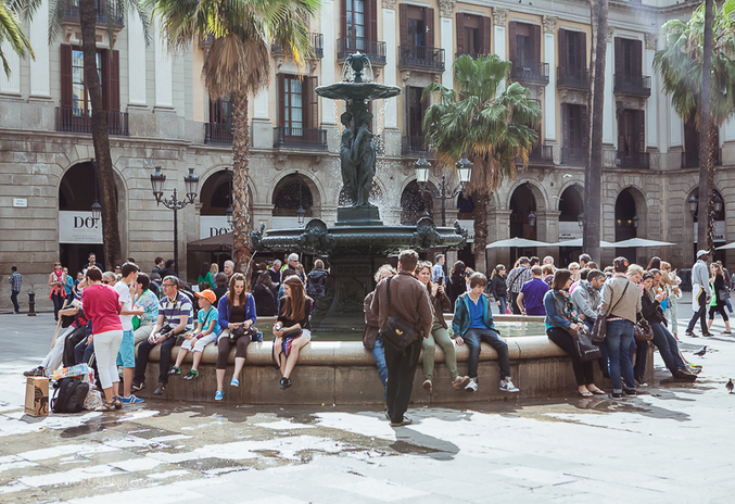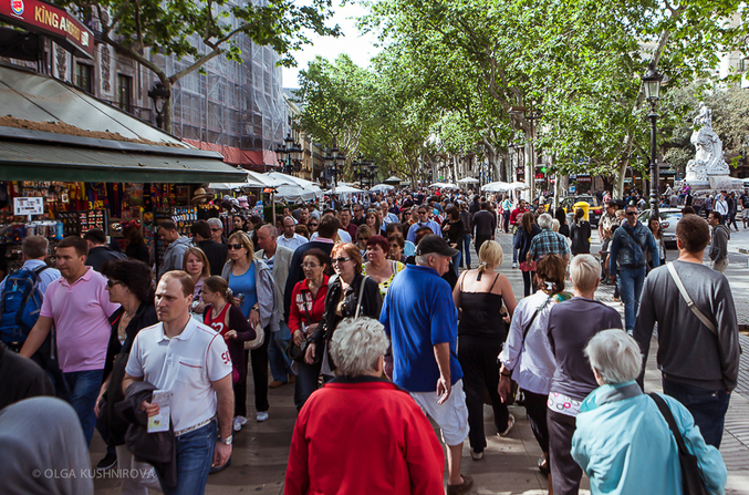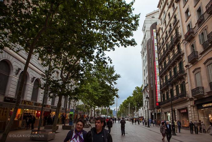 Бульвар La Rambla. Мега популярное место в Барселоне, но нам там совсем не понравилось, толпы народа, сувениры, кафешки...