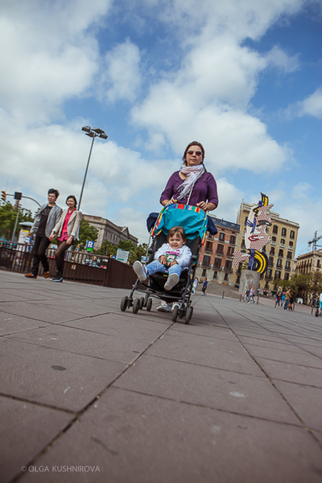 Прилетели мы утром, из аэропорта добрались на автобусе А1, который идет до площади Каталонии (стоимость презда 5,95 евро), а оттуда до отеля 2 остановки на метро, с которым мы разобрались быстро))) Заселились в отель, перекусили кофе-чаем с сендвичами и пошли покорять улицы Барселоны))), в этот раз про коляску для дочи мы не забыли)))