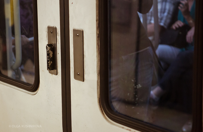 Двери вагонов оборудованы специальными ручками, если хочешь открыть дверь для входа или выхода из вагона нужно ее нажать, сама дверь не откроется. Видимо сделано для экономии ресурсов вагонов, лишний раз двери не срабатывают на полупустых станциях.