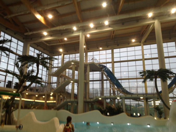 Дело было сегодня, то есть вечер четверга. Народу мало, очень мало, если не сказать практически никого) Внутри все очень похоже на Трансваль, горки те же, все примерно также расположено, добавили небольшой бассейн за стеклом, именной бассейн, чтоб поплавать.