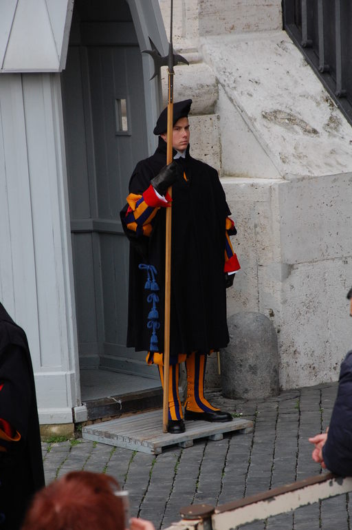 На выходе стоят солдаты Швейцарской гвардии, говорят форму для них придумал Микелианжело