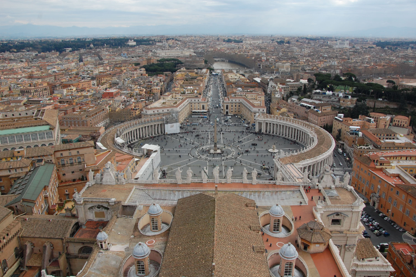 Это фото с самой верхушки собора, чтобы попасть сюда мы отстояли очередь с середины площади, на уровне стелы, пока мы лезли наверх, очередь удлинилась почти до другого конца площади)